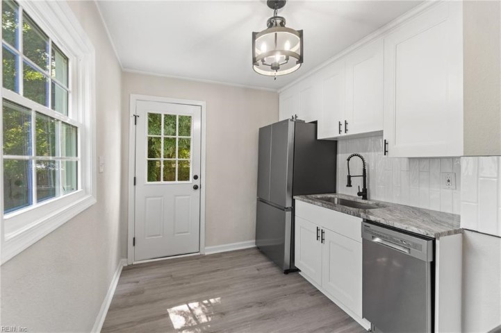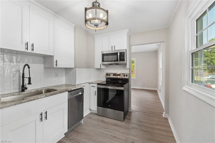 Beautiful 2-bedroom, 1-bath single-family home in a friendly neighborhood. This renovated home boasts modern finishes, fresh paint, and beautifully installed flooring that complements the space. Enjoy the natural light streaming through the windows and the convenience of a well-designed kitchen and stylish bathroom. With a pleasant front and backyard, this gem is perfect for those seeking comfort and coziness. Don't miss the opportunity to make this delightful house your home!